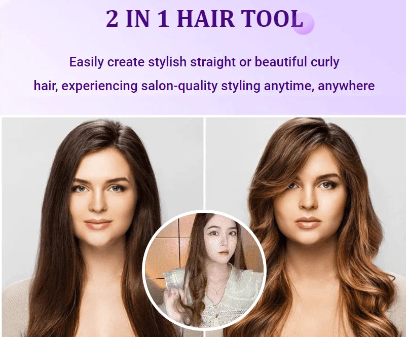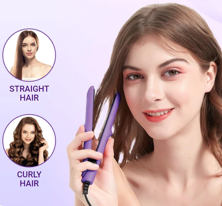 Transform your hair effortlessly with our 2-in-1 Mini Curling Wand & Flat Iron Hair Straightener.