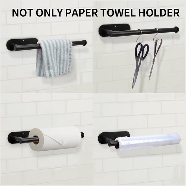 The matte black metal rod pairs seamlessly with wood, stainless steel, or modern kitchen decor—plus, it’s tough enough to hold extra-large paper towel rolls without wobbling.