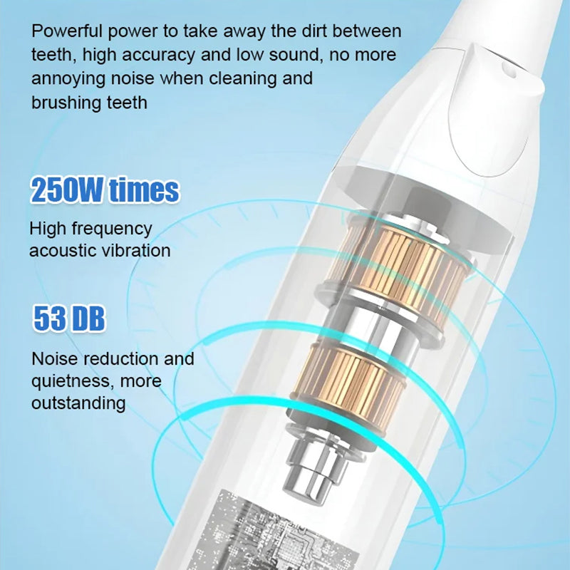 ULTRASONIC VIBRATION TECHNOLOGY: Utilizes high-frequency ultrasonic vibrations to quickly and efficiently break down old dental calculus, delivering a deep clean while being gentle on your gums.