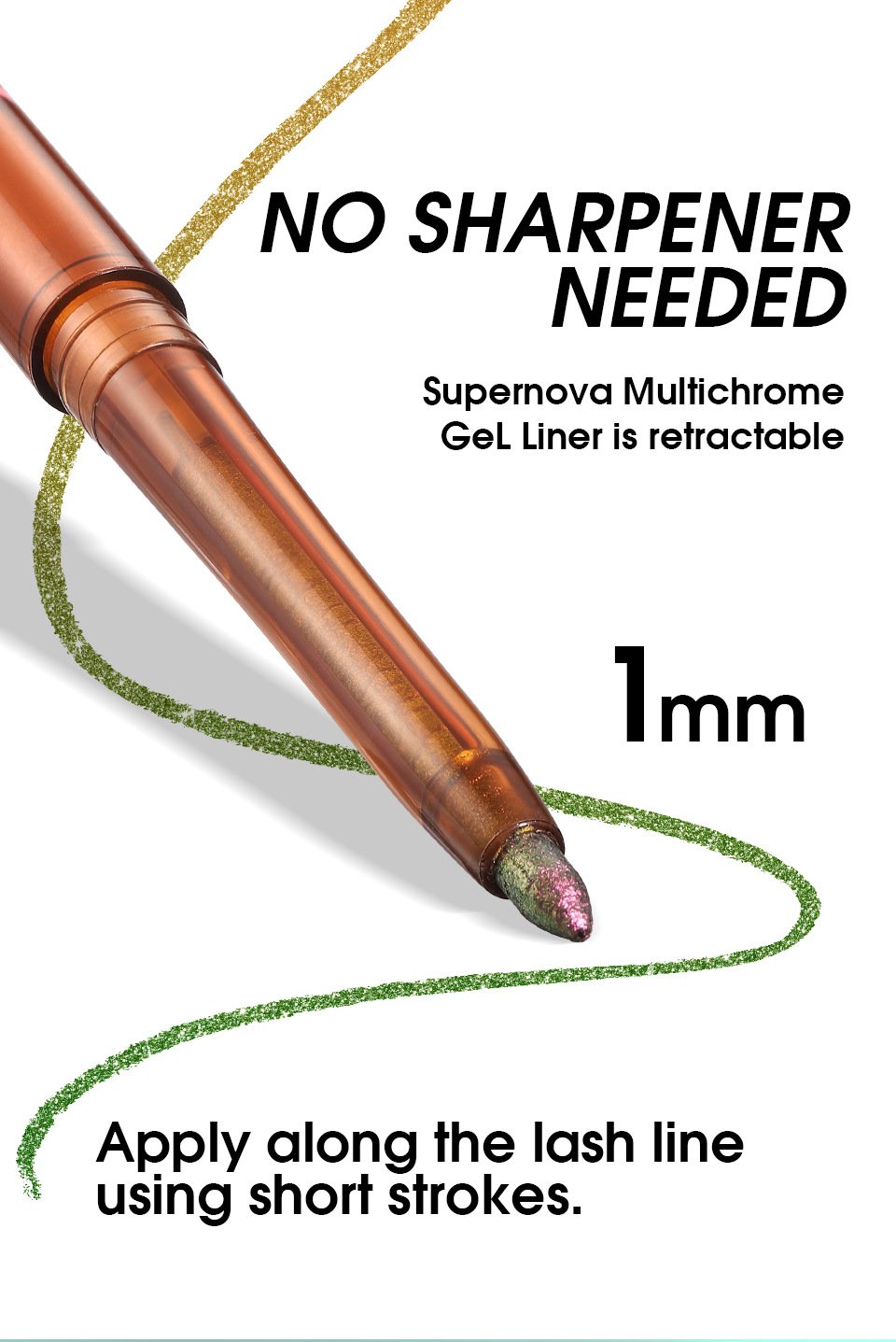 This eyeliner pencil is designed to deliver intense color payoff with a unique color-shifting effect that adds a touch of sparkle and dimension to your eyes, and it will make your eyes stand out from the crowd. Elevate your makeup game with our glittery and vibrant eyeliner pencil.