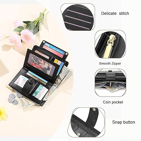 Vegan Leather & Practical Design: Our leather wallet for women is made of high quality synthetic leather, upgraded fabric lining and smooth zipper make it more luxury. Practical Wallet gets even nicer with age.