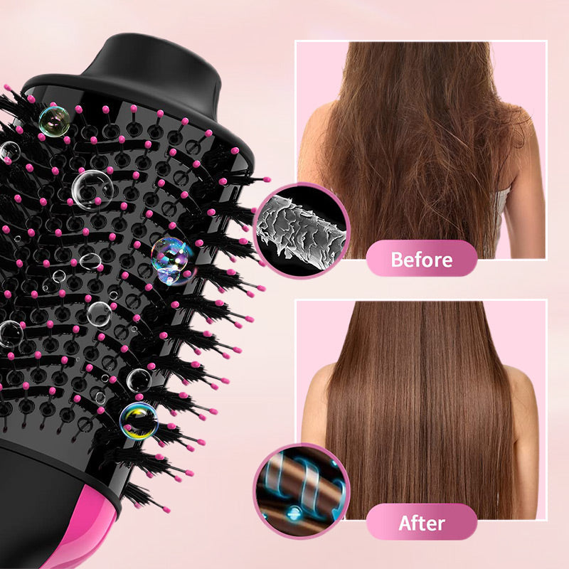 NOISE REDUCTION DESIGN: Enjoy a quieter styling experience with our innovative noise reduction technology. This hairbrush minimizes operational noise, allowing you to style your hair in peace, whether at home or on-the-go.