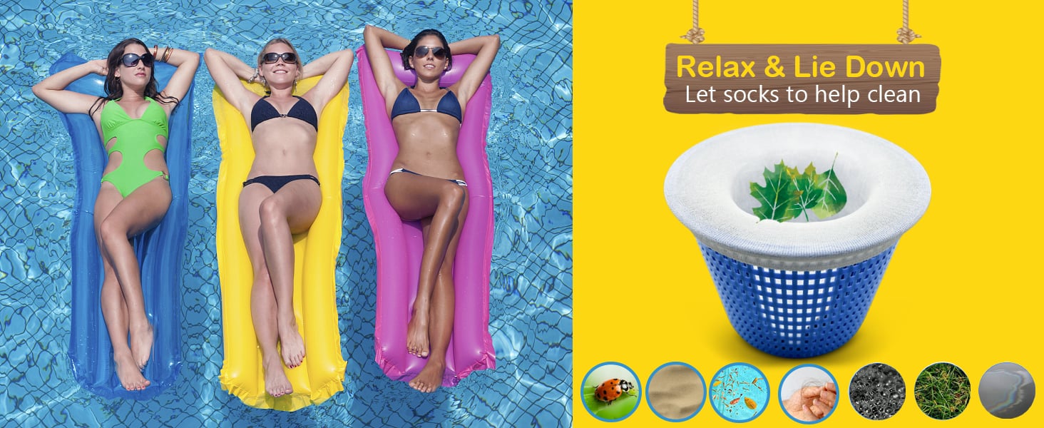 - 🤽♀️KEEP POOL CLEANER 🤽♀️- By using pool filter socks, Traps all the gunk and debris, and keeps your water sparkling clean. Save time to having fun with family /friends by playing water, not on a boring tidy pool skimmer filter system.