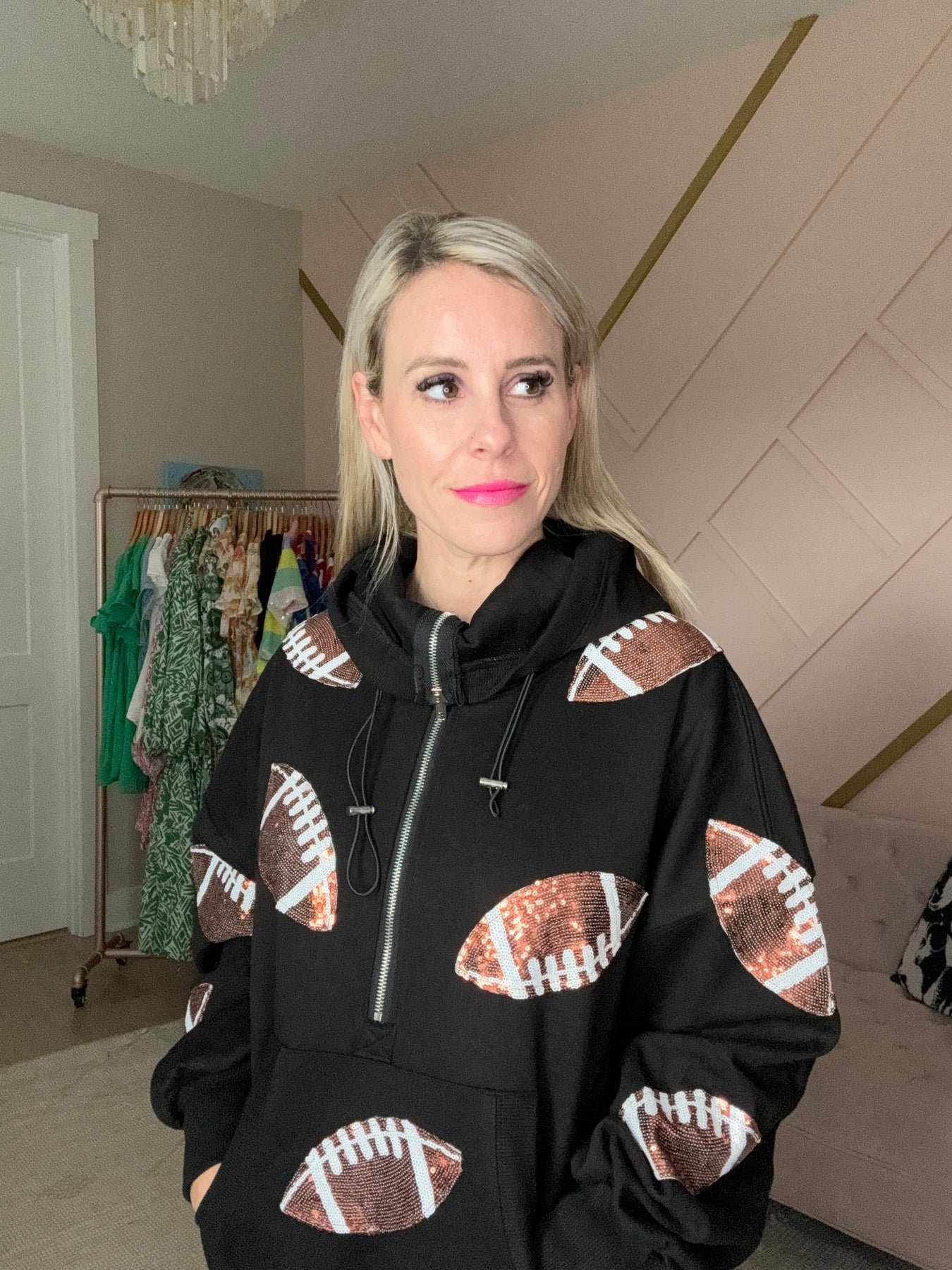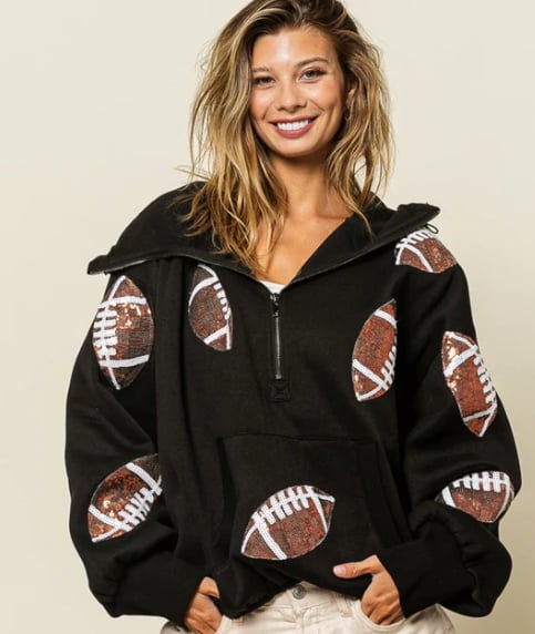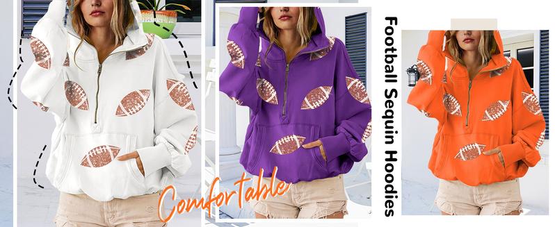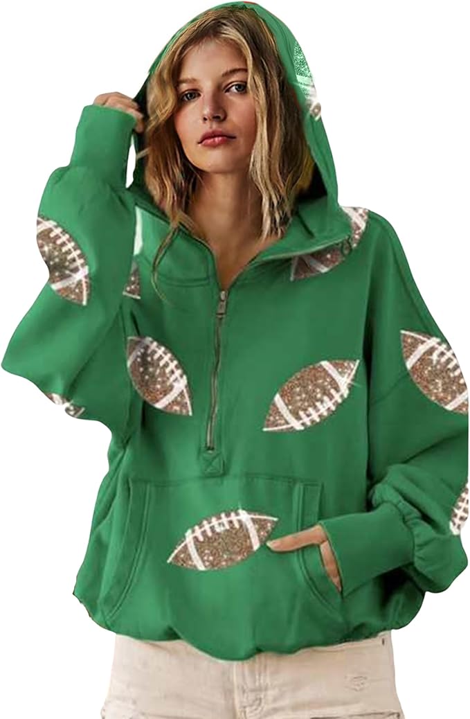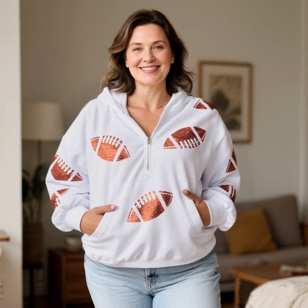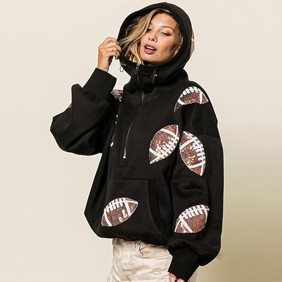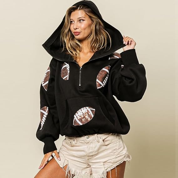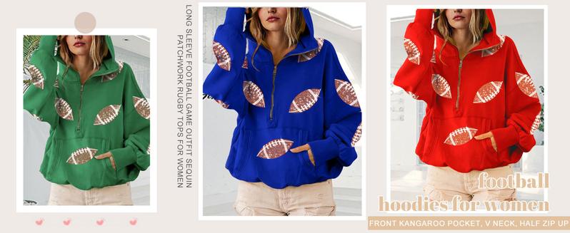 🏈✨ Game Day MVP! Sequin Half-Zip Hoodie – Slay at Games & Streets, Plus Pockets for All Your Treasures ✨🏈