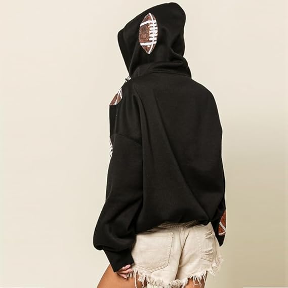 ✨New Style🔥Womens Game Day Sweatshirts Football Sequin Hoodies with Pocket