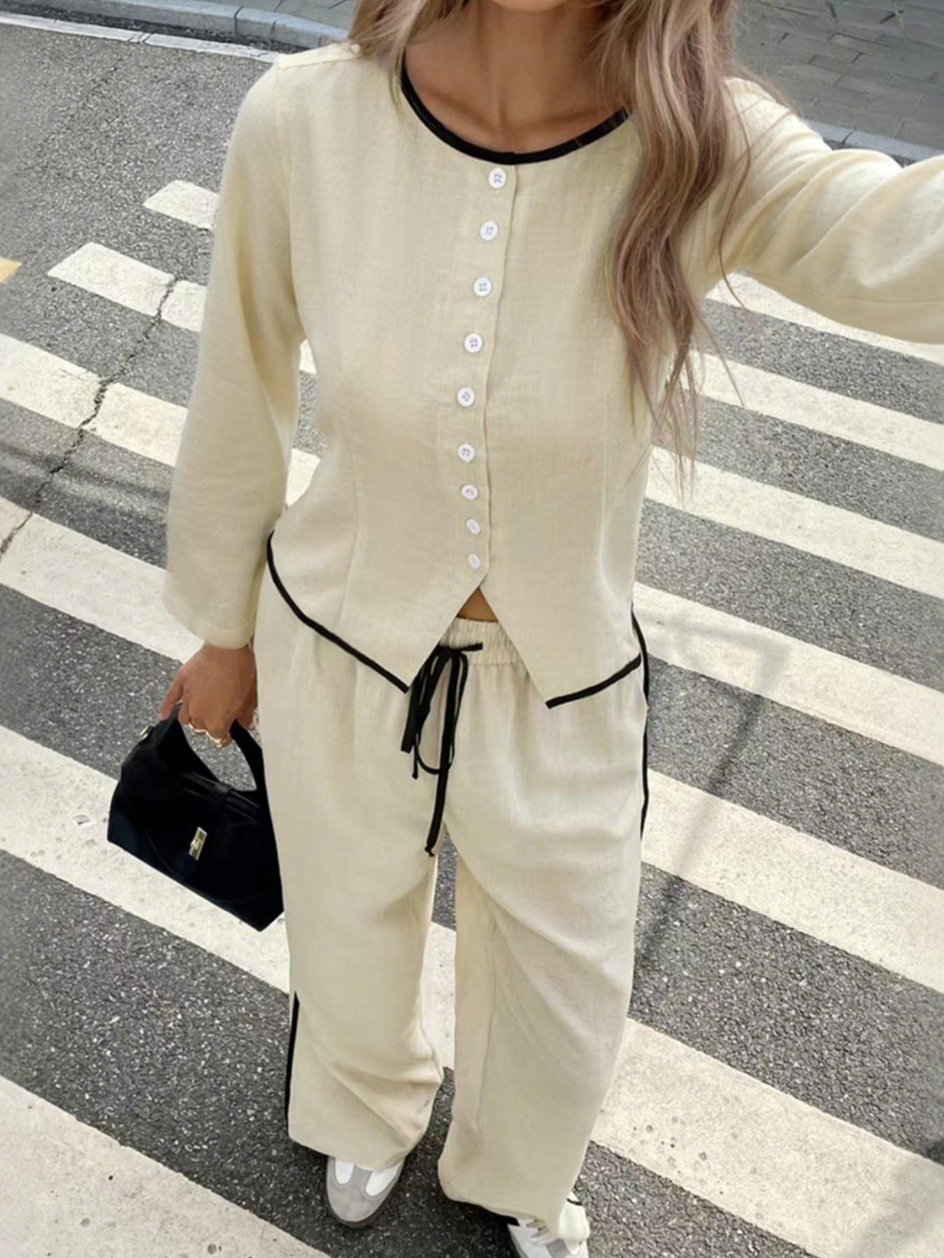 🔥Hot Sale 50% Off🔥Women's Contrast Binding Sleeveless Tank & Drawstring Waist Pants Two-piece Set